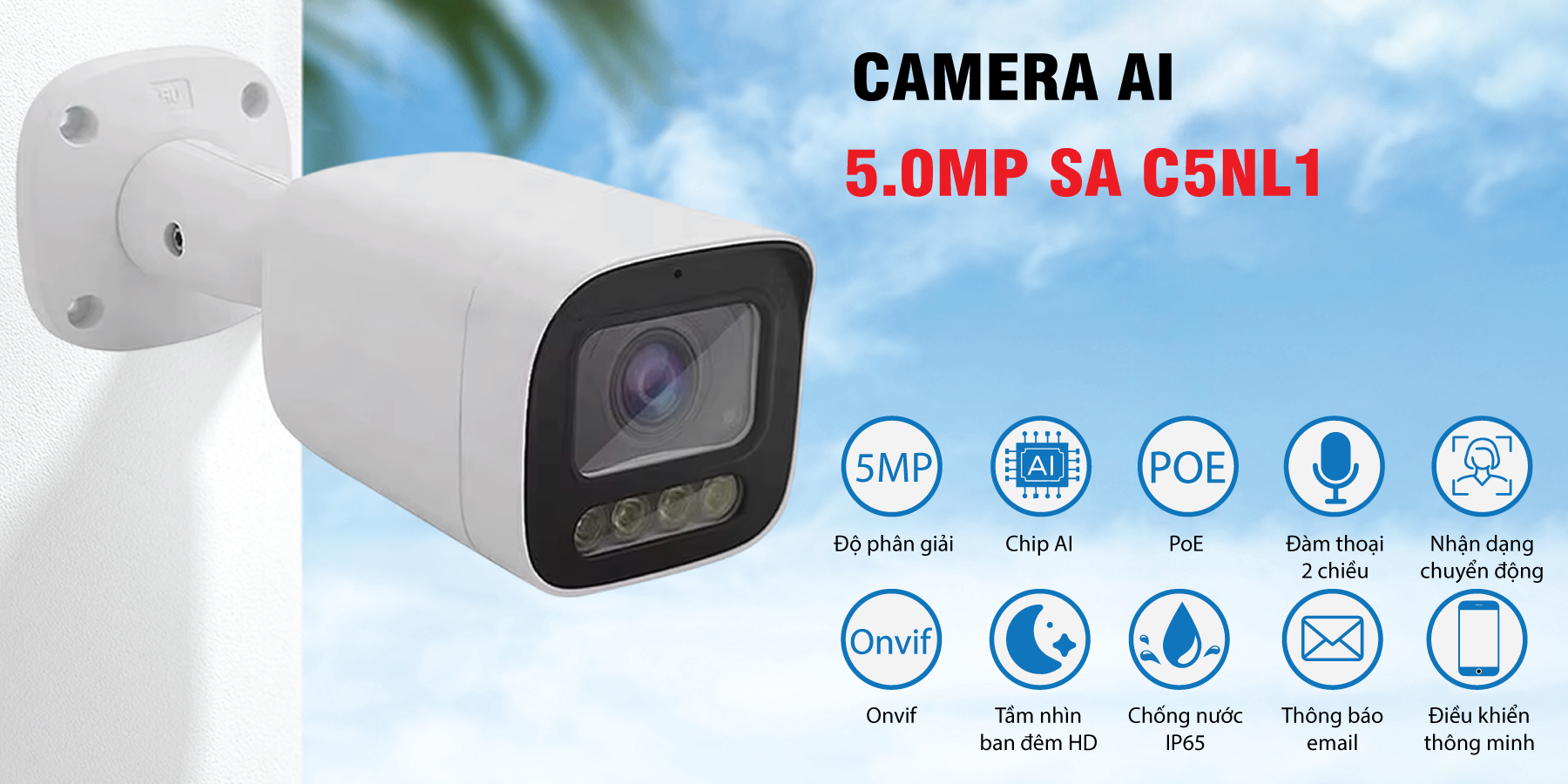 Camera thông minh 5.0MP SA C5NL1 (Out door) với thiết kế thân trụ nhỏ gọn, vỏ làm từ hợp kim nhôm tăng độ bền và khả năng chống chịu với các yếu tố thời tiết ngoại cảnh phù hợp lắp ngoài trời. Ngoài ra sản phẩm còn được tích hợp hồng ngoại, led để nhìn vào ban đêm và hỗ trợ tính năng đàm thoại hai chiều.