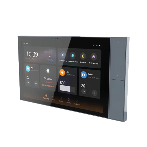 SA MH10.3 là một bộ trung tâm thông minh tích hợp màn hình cảm ứng điều khiển lên đến 10.1 inch vô cùng hiện đại tiện nghi và sang trọng, dùng để quản lý và điều khiển các thiết bị điện thông minh trong ngôi nhà như đèn, máy lạnh, TV, máy sưởi, máy lọc không khí, công tắc thông minh, tưới cây, … hoặc kích hoạt những ngữ cảnh kịch bản theo ý chủ nhân như chế độ thư giãn thì bật nhạc dịu dàng và mở rèm để đón ánh sáng, chế độ tiếp khách thì bật đèn, bật điều hòa, mở rèm; chế độ đi ngủ hoặc ra khỏi nhà sẽ tự động tắt hết các thiết bị không cần thiết, đồng thời có thể nhận các thông báo từ hệ thống cảm biến an ninh khi có sự xâm nhập bất thường vào ngôi nhà,… ngoài ra màn hình trung tâm còn có thể nhận thông báo chuông hình và đàm thoại 2 chiều với người bấm chuông, mở các camera xung quanh nhà để theo dõi mà không cần dùng điện thoại.