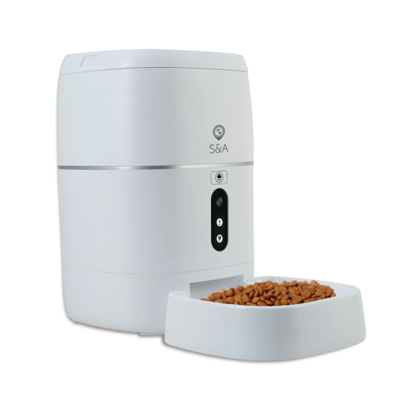Máy Cho Thú Nuôi Ăn Tự Động S&A có thể giúp bạn cho thú nuôi như chó mèo trong nhà ăn một cách tự động khi bạn bận đi công tác, đi chơi dài ngày hoặc bạn hay quên chó mèo thú nuôi ăn theo thời gian nhất định. Khi gắn máy vị trí và đổ đầy thức ăn bạn sẽ lập trình thời gian và khối lượng thức ăn cho thú nuôi. Thức ăn thích hợp với máy là đóng túi tiêu chuẩn dạng hạt. Thiết bị tích hợp Wifi điều khiển thông minh từ xa qua điện thoại ở bất cứ đâu có mạng wifi, 3G, với chế độ hẹn giờ cho ăn linh hoạt bạn cũng có thể điều chỉnh mức độ thức ăn theo ý mình. Chính xác định lượng thức ăn đảm bảo thú nuôi ít tại một thời điểm và nhiều bữa một ngày, giữ cho chúng sức khỏe và tràn đầy năng lượng.